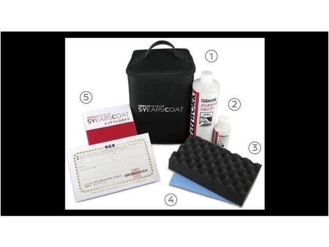 専用メンテナンスキット付属で安心です。 「5YEARS COAT」には専門のメンテナンスキットが付属しているので、普段のお手入れはもちろん、頑固な汚れがついてしまったときにも安心です。 |