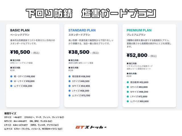 | プラン名 | 基本プラン | Aプラン 塩害ガードスタンダードプラン 軽サイズ |