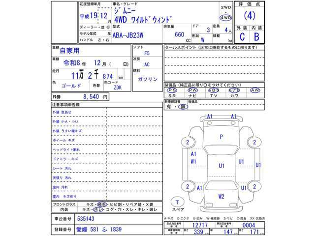 | 保証 | 保証付 詳細については、販売店にご確認ください。 保証期間:1ヶ月 保証距離:1,000km 別途有料保証あります。 |