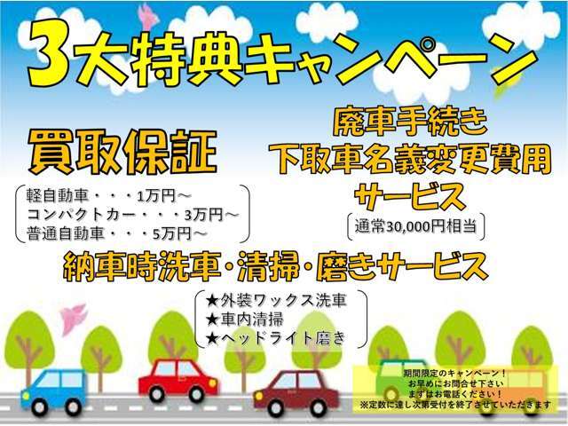 | 保証 | 保証付 詳細については、販売店にご確認ください。 保証期間:3ヶ月 保証距離:3,000km エンジン内部機構 シリンダーヘッド・ブロックおよび内部構成部品 動力伝達機構 トランスミッション・プロペラシャフト ステアリング機構 ステアリングコラム及びギヤハウジング ステアリング・パワーステアリング 前後アクスル機構 フロントサスペンション及びアクスル 中古車は外装、内装、付属品は現状となります。(メンテナンスセット未実施車は1ヶ月1千キロ保証・保証限度額は車両価格と同額になります。) |
