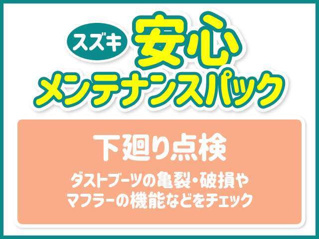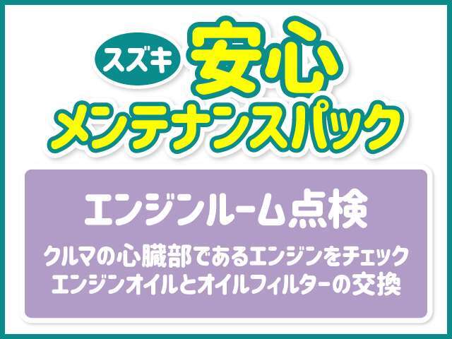 | 補足 | - | JAFは年中無休・24時間・全国ネットで、品質の高いロードサービスを提供しております。 「バッテリー上がり」や「キー閉じこみ」などでお困りの際、JAF会員なら安心です。ドライブのお供にぜひ! | スズキ安心メンテナンスパックはオイル交換も定期点検もパックになって安心お得!!詳しくは担当営業までお尋ねください。加入時期によって内容が異なりますので詳しくはお尋ねください!! |