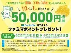 ご来店頂いたお客様の中で当日中に買取・下取のご成約された方から10人に1人ファミマポイント5万円相当が当たるキャンペーンを実施します!